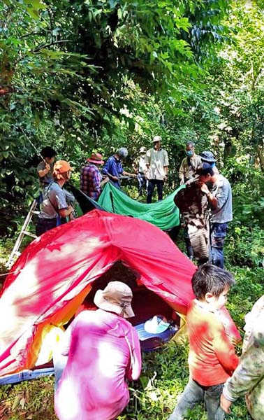 午後はテント張り体験、林内散策、生き物観察の予定でしたが。。。