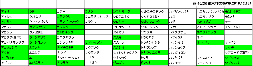 以下の表は2010年12月10日の植物調査結果です。