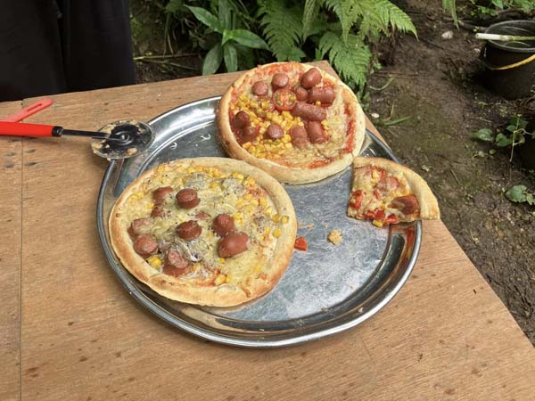 執念でピザ焼き、ご飯炊き、トウモロコシを焼き上げました。
