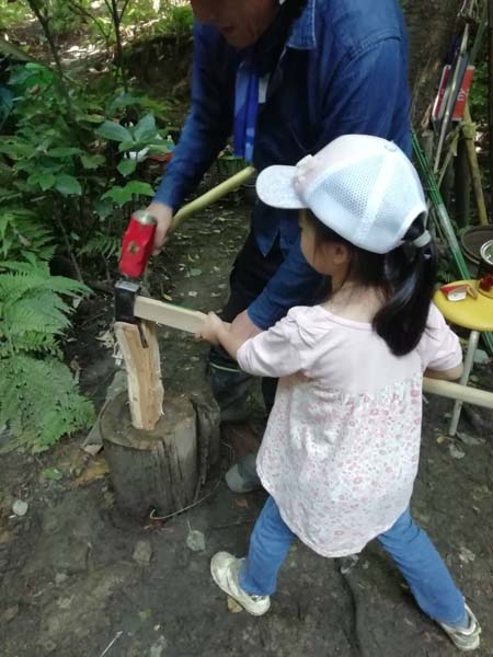 あずまの森 7月21日(日)「焚き火の会inあずまの森」薪割り体験