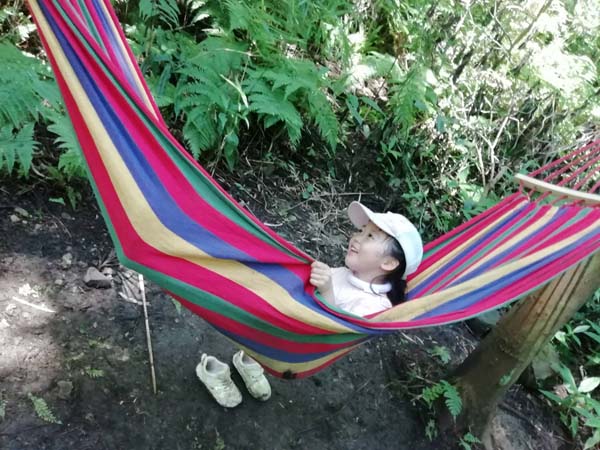「基地」のようなところで、焚き火やハンモックやまったりしながら