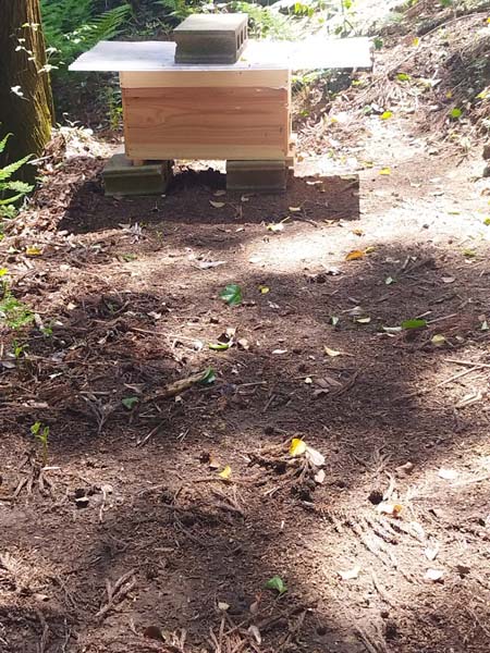 先日、西洋ミツバチを一箱森の中に置いた。