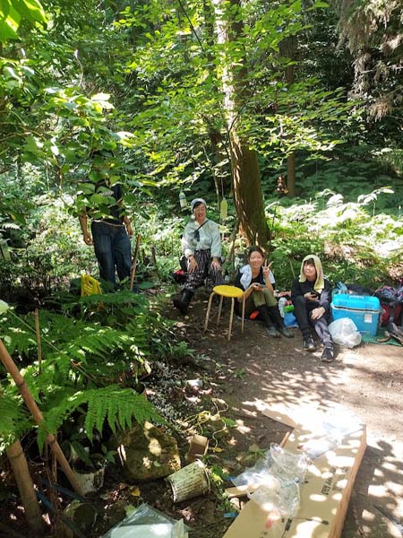 森づくり初心者の方々も、いつの間にか「しがらみ」を知り、刈ってあった笹と枯れ枝で、